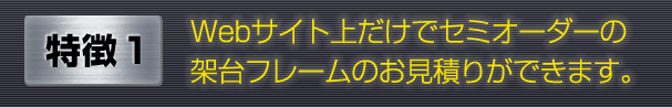 特徴1 Webサイト上だけでセミオーダーの架台フレームのお見積りができます。