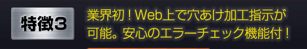 特徴3 業界初!Web上で穴あけ加工指示が可能。安心のエラーチェック機能付!