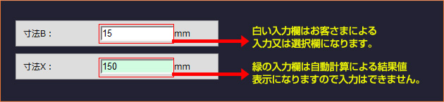 の各値の寸法を入力いただけます。