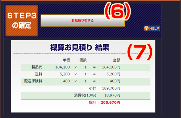 (6)こちらのボタンを押して、概算お見積金額をご確認下さい。